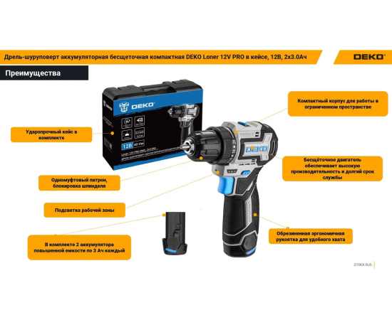 Дрель-шуруповерт аккумуляторный Deko Loner 12V Pro 085-1011 патрон:быстрозажимной (кейс в комплекте)
