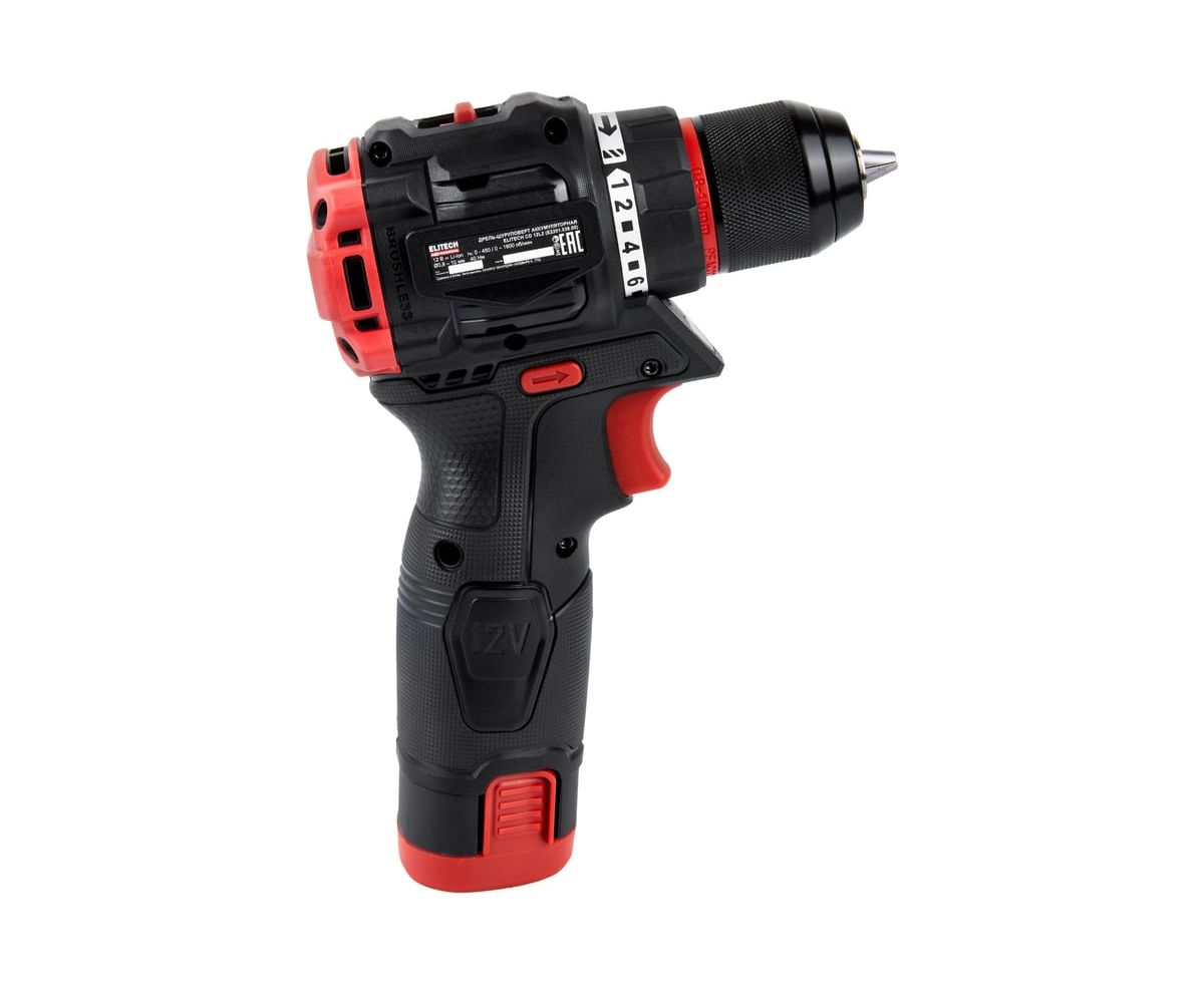 Elitech Дрель аккумуляторная CD 12L2 (E2201.038.01) HD 205713 с Li-Ion аккумулятором напряжением 12 В высоким крутящим моментом 40Hм и максимальной скоростью вращения 1600 об/мин предназначена для сверления отверстий в черных и цветных металлах, дереве и производных материалов на его основе (фанера, ДСП, OSB, МДФ и подобные), различных видов пластика и для установки крепежа.