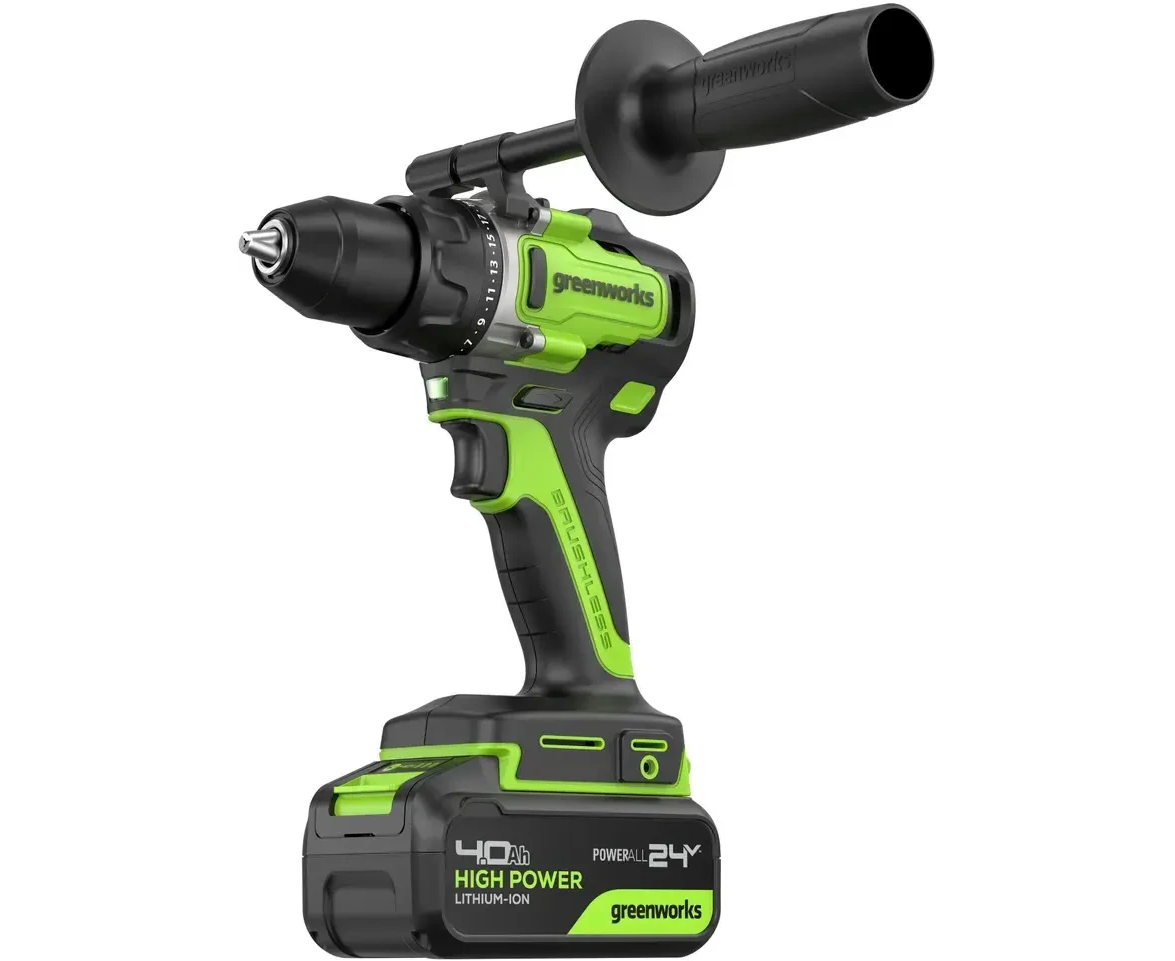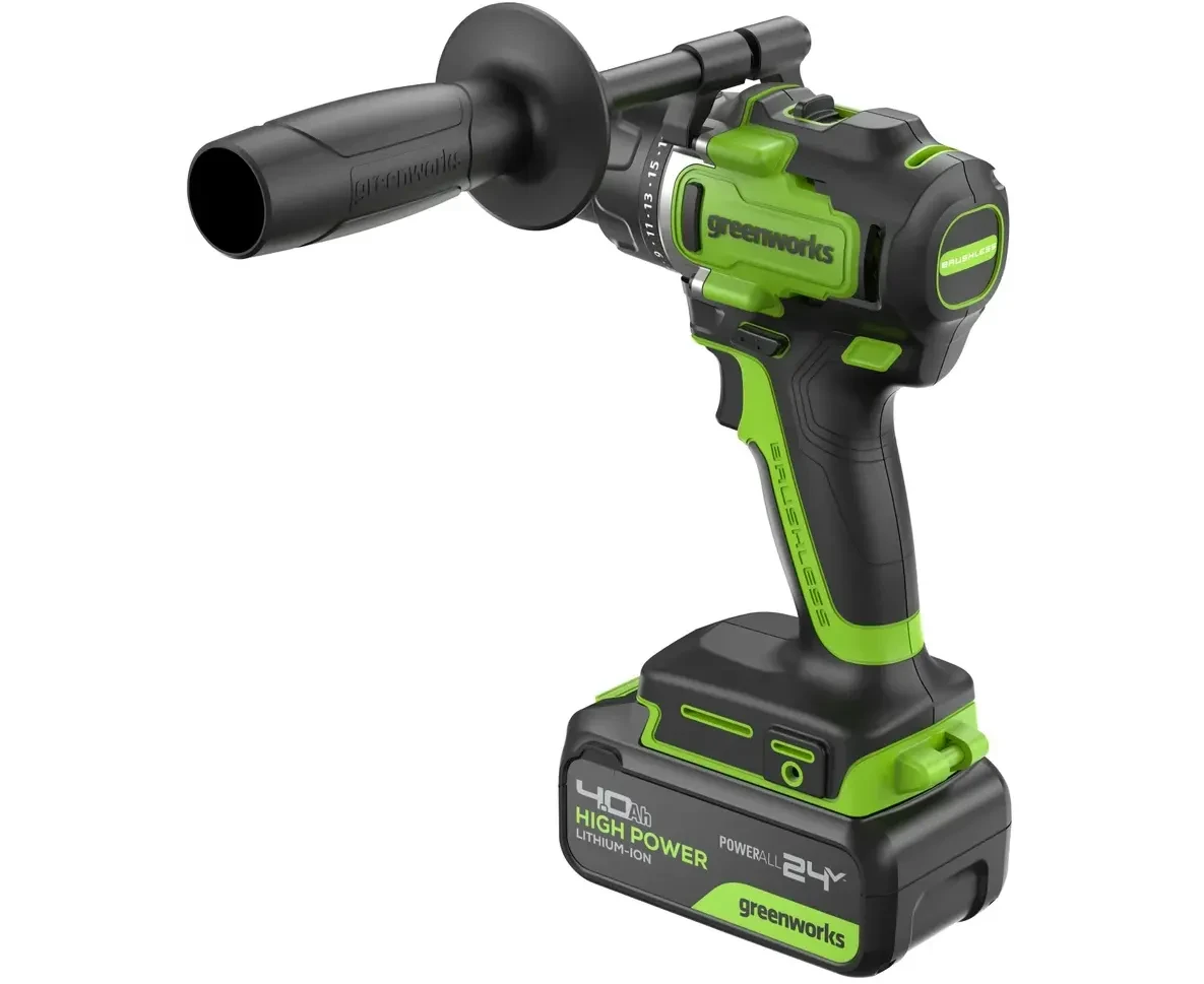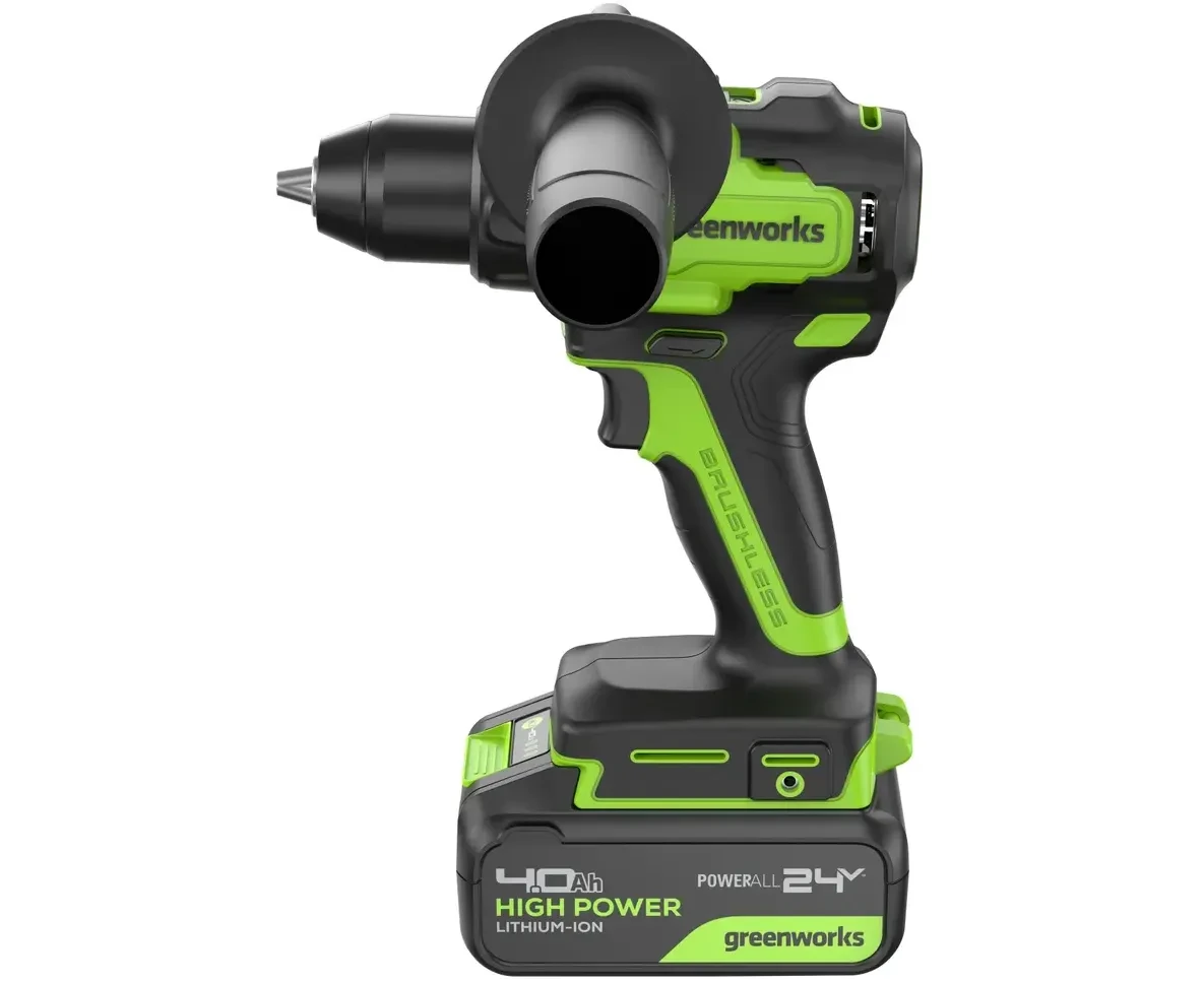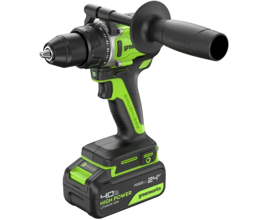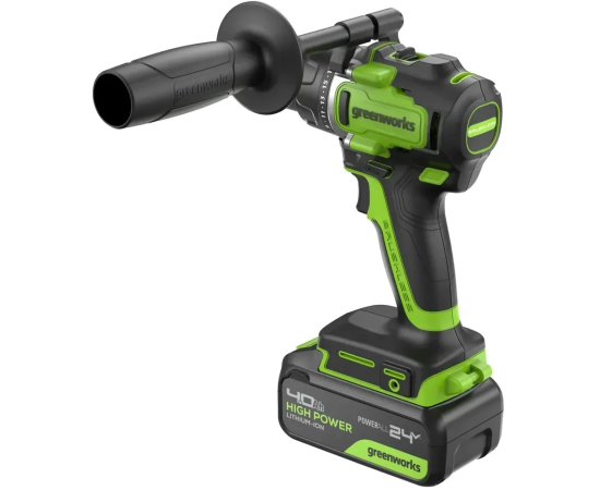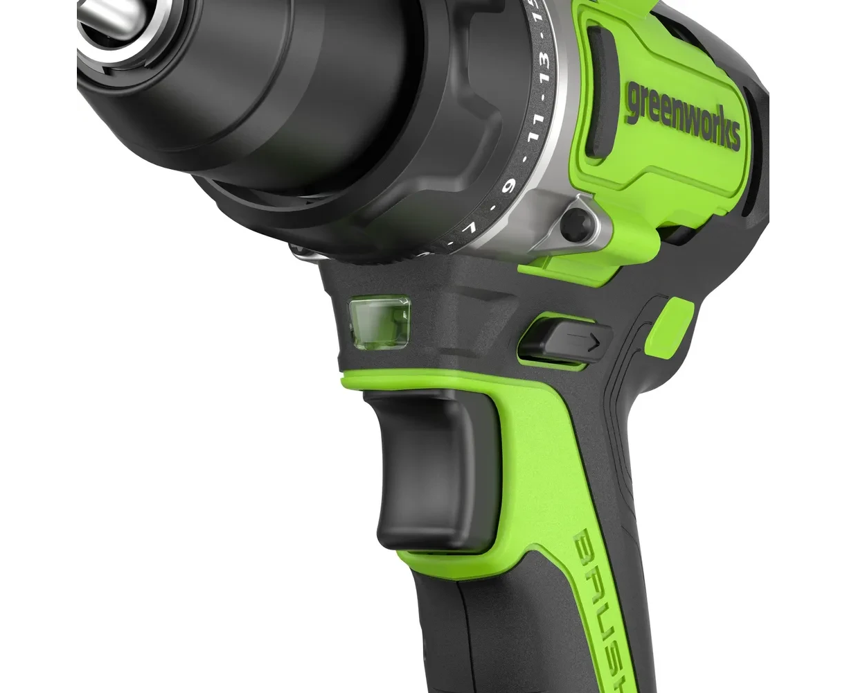 Дрель-шуруповерт Greenworks GD24DD90 (3707507CUD) аккумуляторная, 24V, 90Нм, бесщеточная, 45/90Нм, 2х4Ач, ЗУ, кор