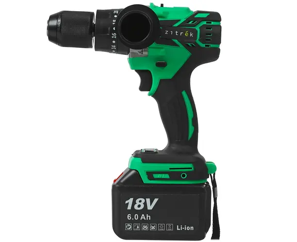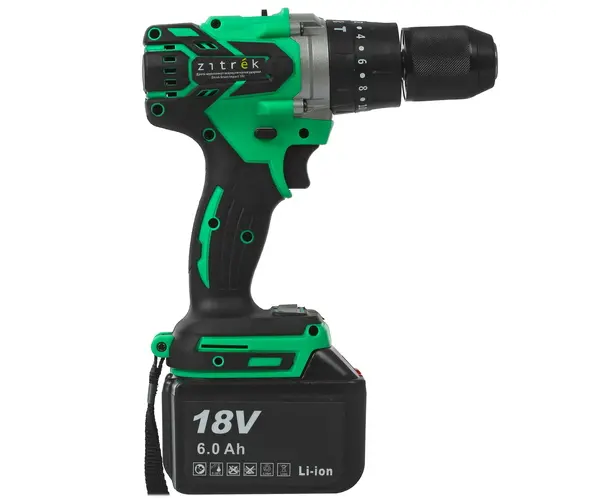 Дрель-шуруповерт способен обеспечить высокую продуктивность и эргономичность. Аккумуляторный инструмент оборудован бесщеточным производительным двигателем, редуктором с 2 скоростями и 20 положениями крутящего момента. Данная модель оснащена рядом функций для повышения удобства в использовании, среди которых отмечаются реверс, подсветка рабочей области и быстрозажимной патрон. Zitrek Green Impact поставляется с двумя аккумуляторами 18 В и зарядным устройством. В набор также входит кейс для удобства хранения и транспортировки инструмента.
