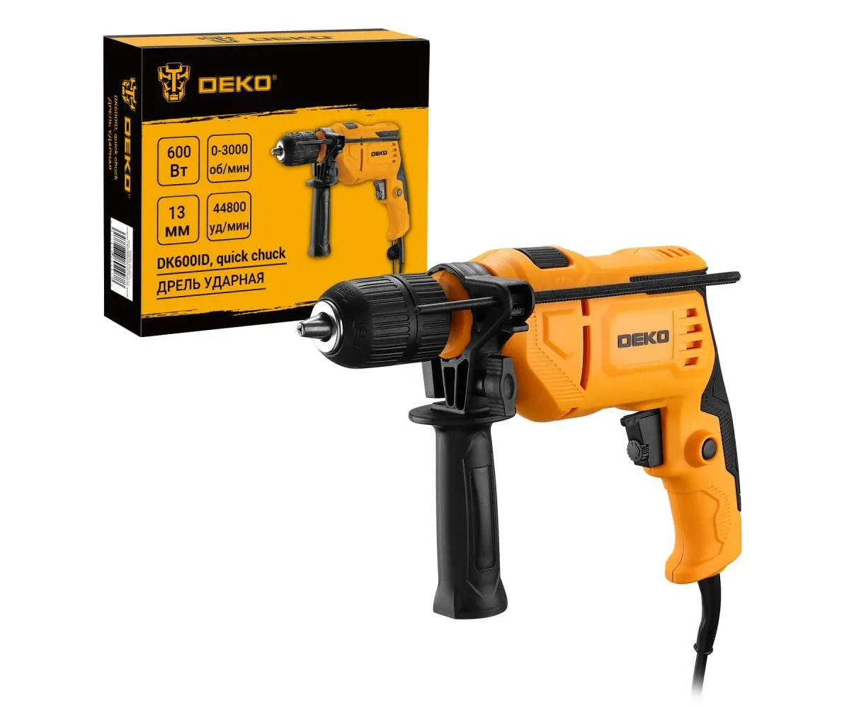 Дрель ударная сетевая DEKO DK600ID (083-1090) с быстрозажимным патроном, 600 Вт