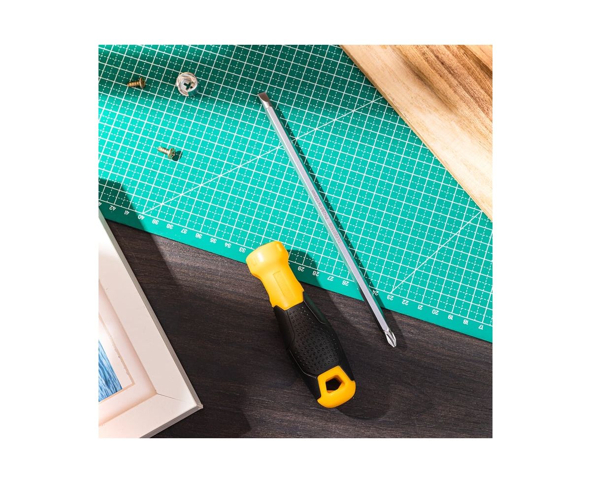 Двухсторонняя отвертка DELI DL626150S PH2+SL6x150 мм 98379 оснащена жалом из закалённой стали и позволяет закручивать или откручивать винты с головками PH или SL, не отвлекаясь на замену инструмента. Прорезиненная пластиковая ручка удобно лежит в руке и не даёт инструменту соскользнуть или провернуться во время работы. Регулируемая длина хвостовика позволяет добраться до труднодоступных винтов, а магнитный наконечник надёжно удерживает винт от падения. Также на ручке имеется отверстие для подвесного хранения.