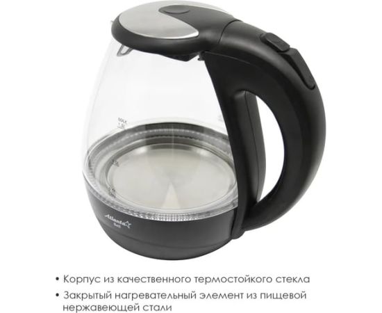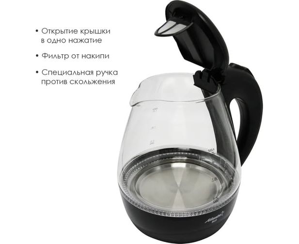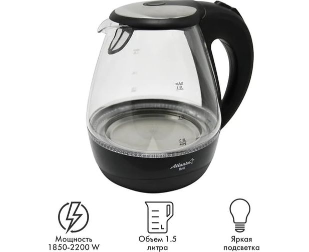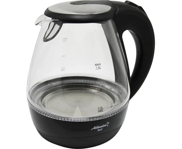 Стеклянный электрический чайник Atlanta ATH-2460 black предназначен для использования в офисе или дома.
