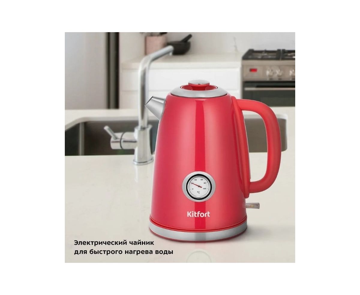 Электрочайник KitFort КТ-6665, 2200Вт, красный и нерж
