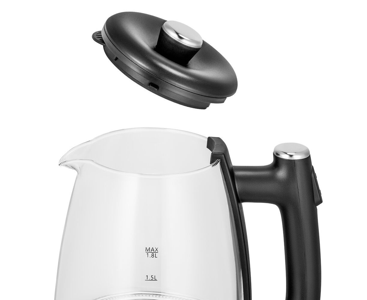 Корпус чайника выполнен из стекла. Ручка чайника сделана из пластика, она не нагревается и удобно лежит в руке. Кнопка включения расположена на ручке сверху. Крышка удобно снимается для мытья и налива воды.