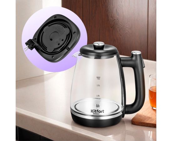 Электрический чайник Kitfort КТ-6728 предназначен для кипячения воды дома, в офисе, на даче. Ёмкость чайника составляет 1,8 л.
