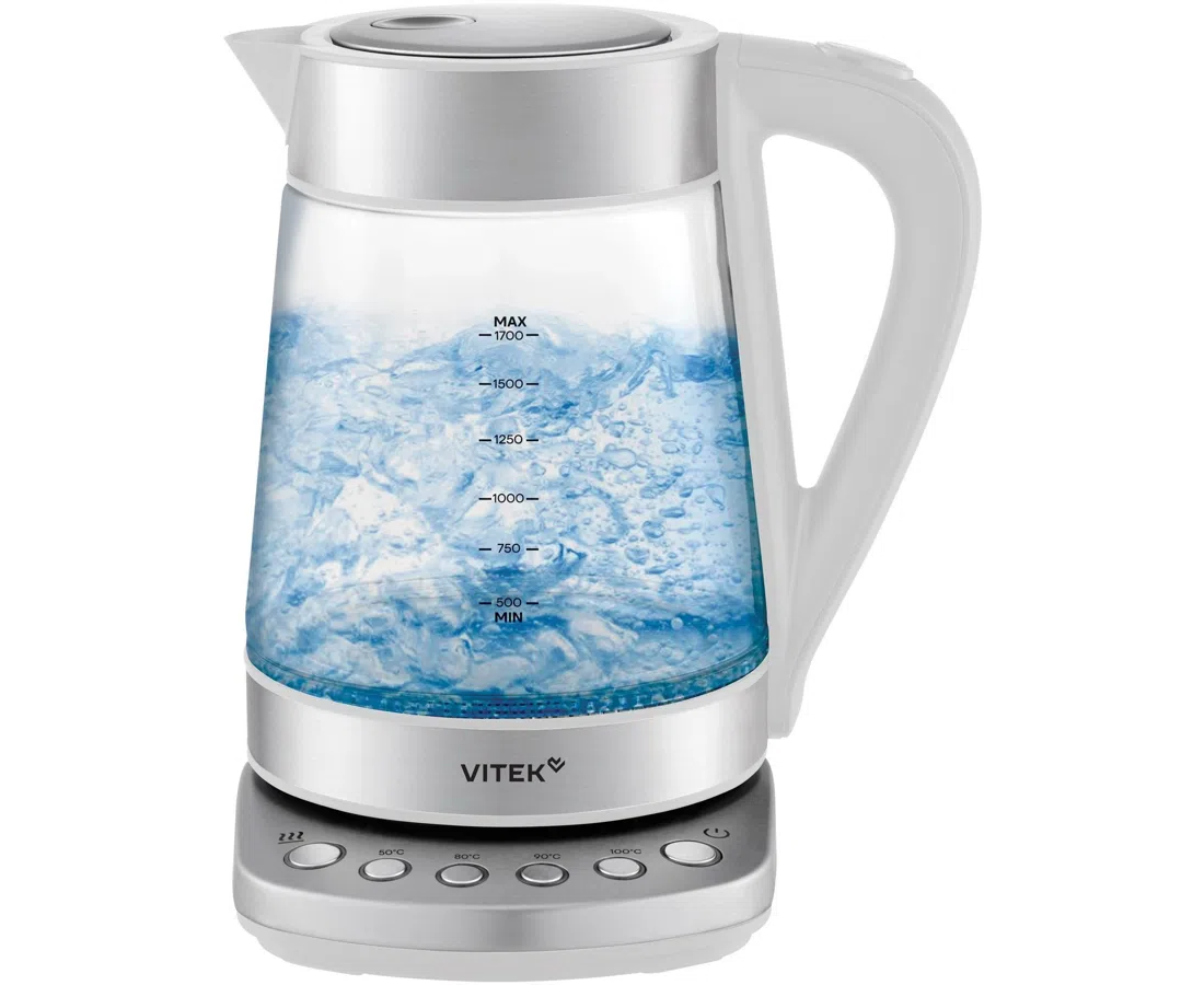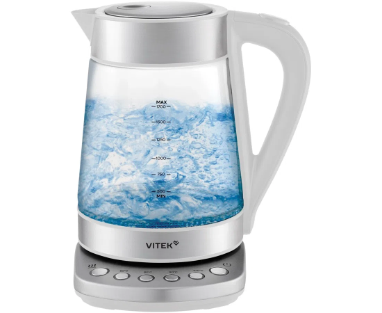 Электрочайник Vitek VT-WK1031 1.7л 2200Вт белый/серебристый корпус стекло/металл/пластик
