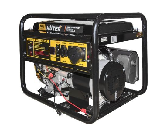 -Бензиновая электростанция Huter DY11000LX оборудована мощным одноцилиндровым четырёхтактным двигателем внутреннего сгорания, мощностью 19 лс