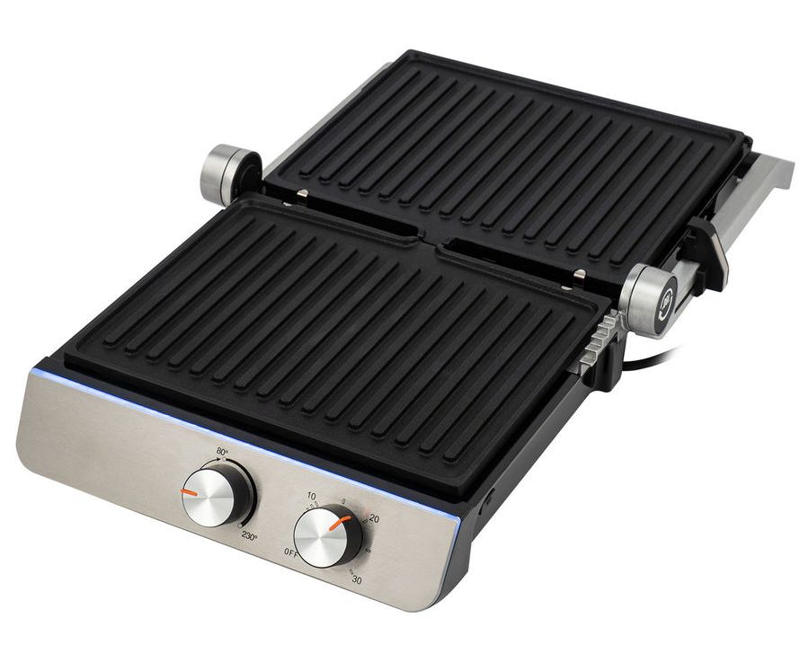 Верхняя крышка имеет «плавающий» фиксатор и адаптирует свое положение под любой продукт с максимальным касанием к панели нагрева.