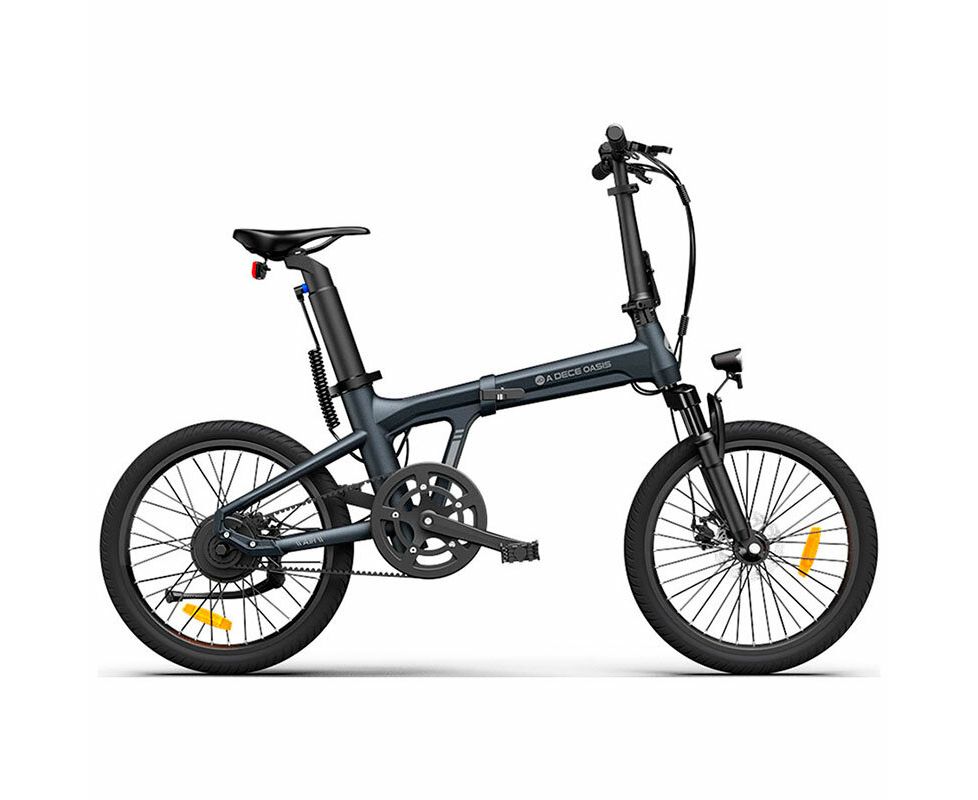 Электровелосипед ADO A20S Lite с амортизационной вилкой, карбоновым ремнем и аккумулятором Samsung для комфортных городских поездок.