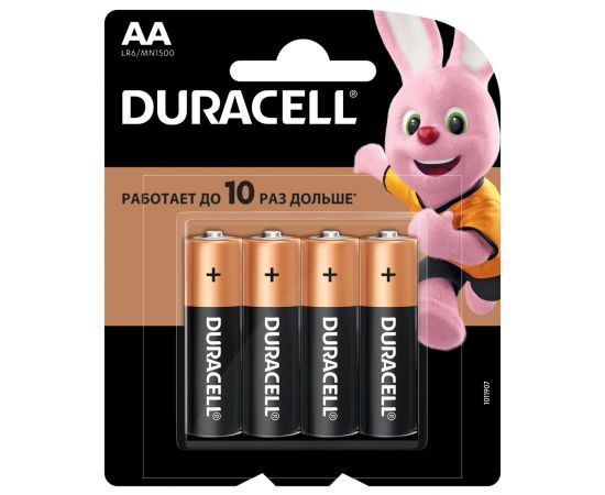 Алкалиновая (щелочная) батарейка типа AA / LR6 / MN 1500 (пальчиковая). Благодаря особой технологии Duralock неиспользованные батарейки Duracell могут сохранять заряд до 10 лет при хранении в обычных условиях. С этими батарейками Вы можете полностью положиться на свое устройство.