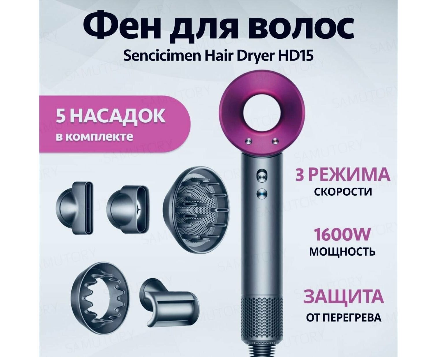 Фен для волос SenCiciMen Hair Dryer HD15 Pink EU (упаковка на английском)