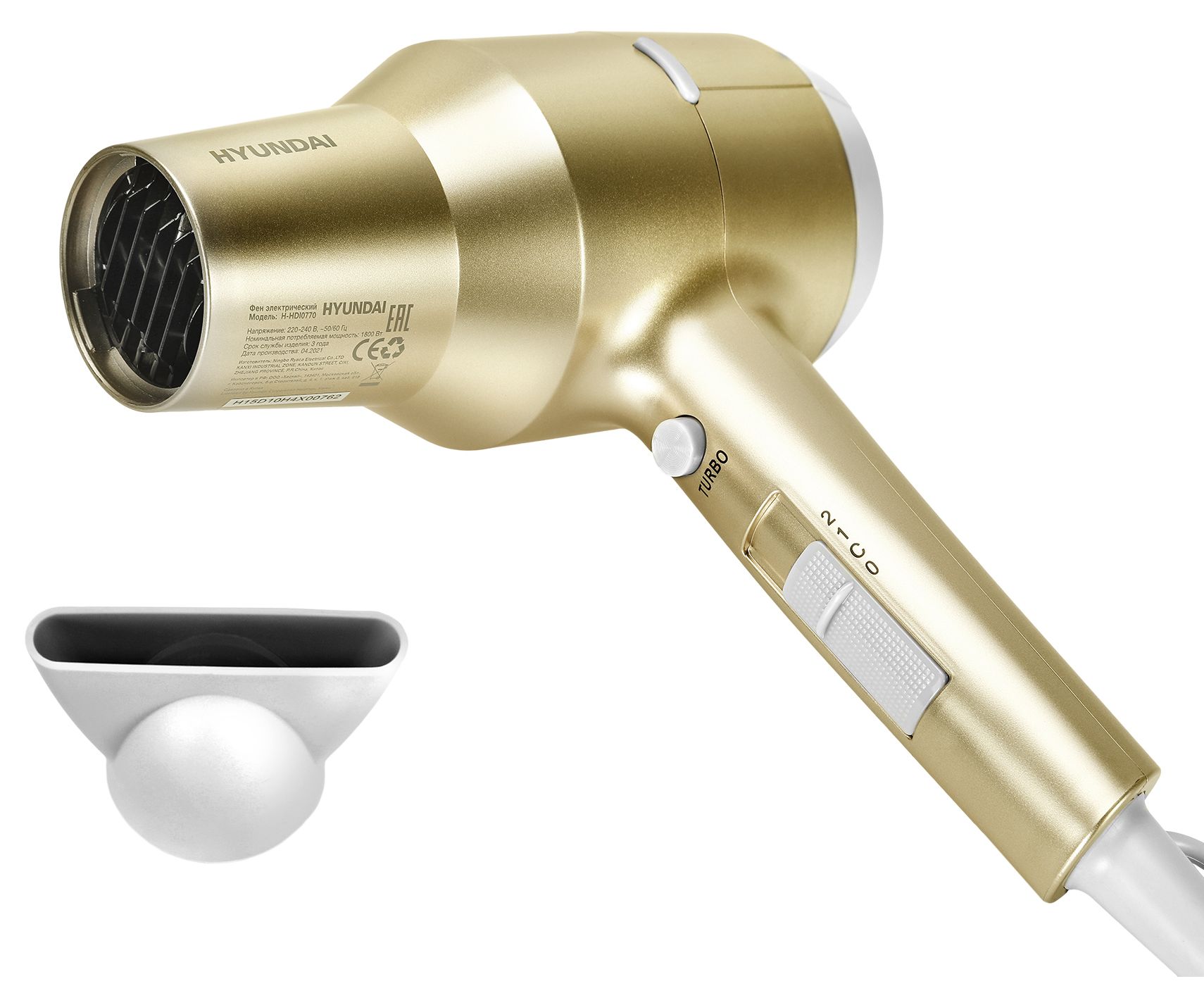 Фен HYUNDAI H-HDI0770, дорожный, 1800Вт, шампань и шампань