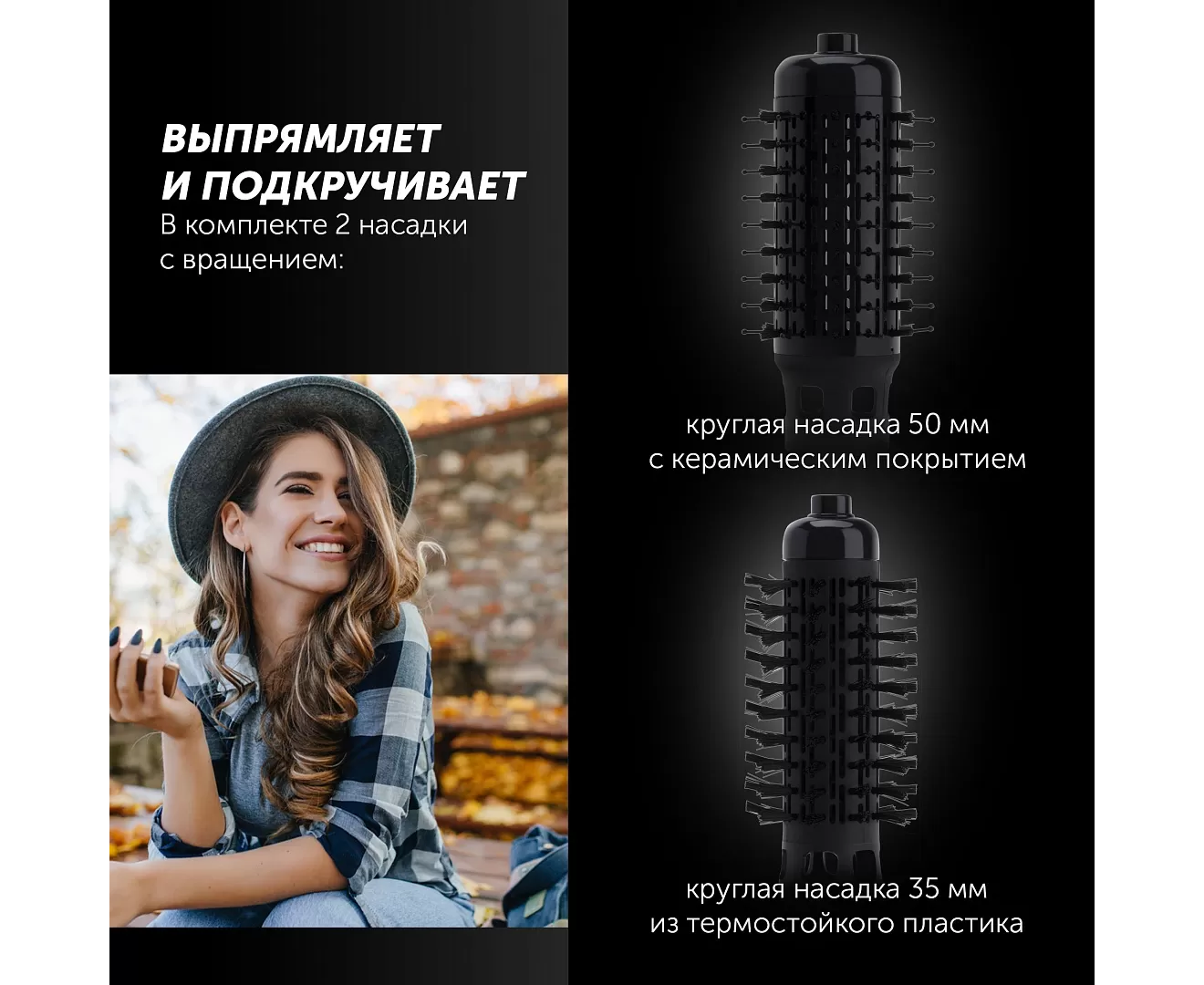 Быстрая и легкая укладка феном-расческой с вращением!