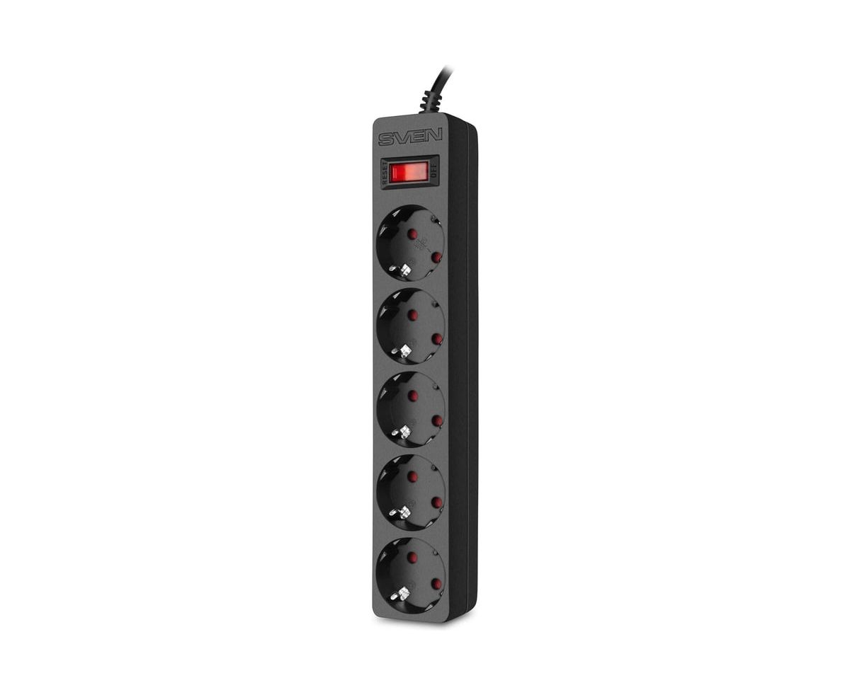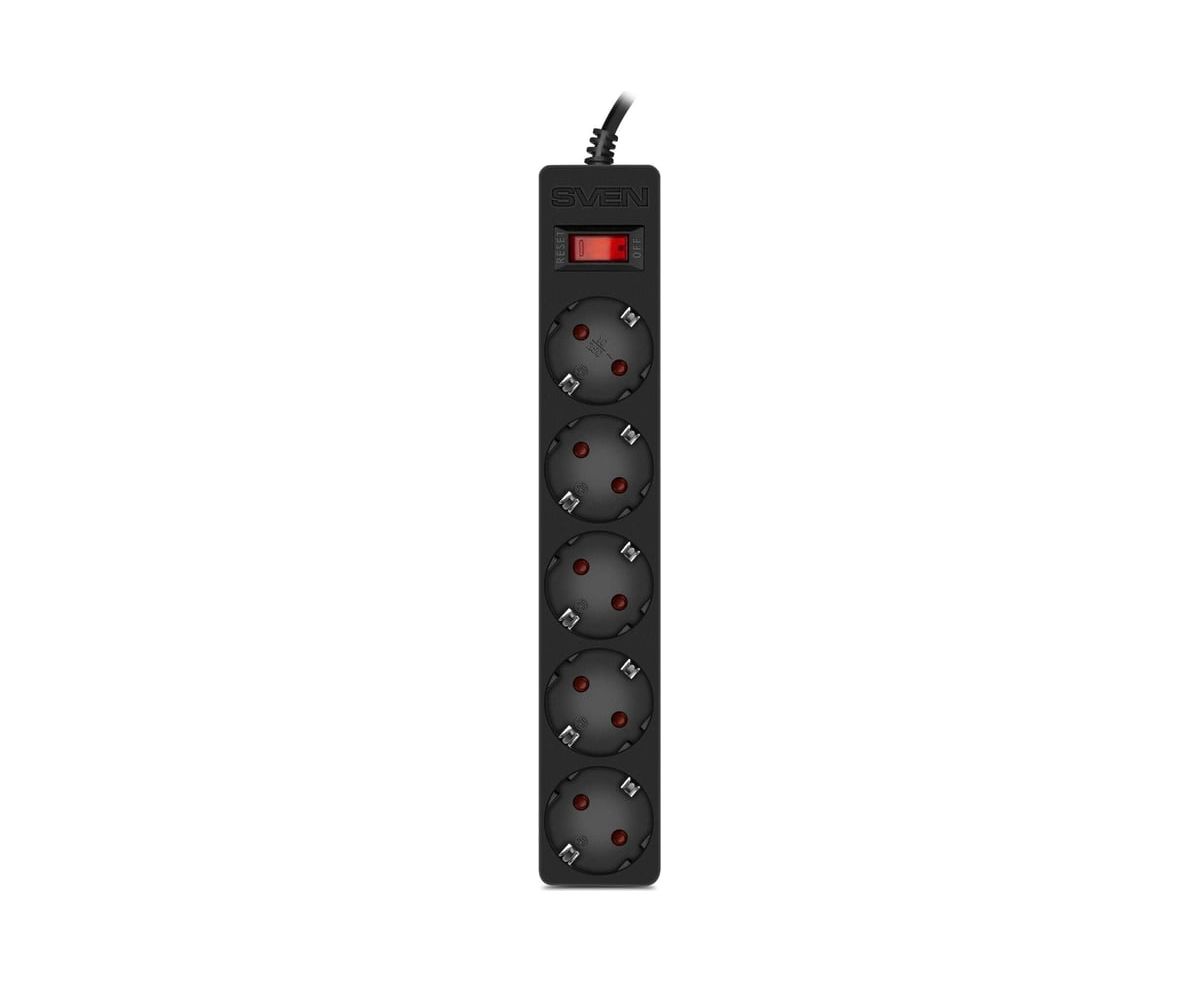 Фильтр SVEN SF-05E 5,0 м (5 розеток с защитными шторками) черный, цветная коробка