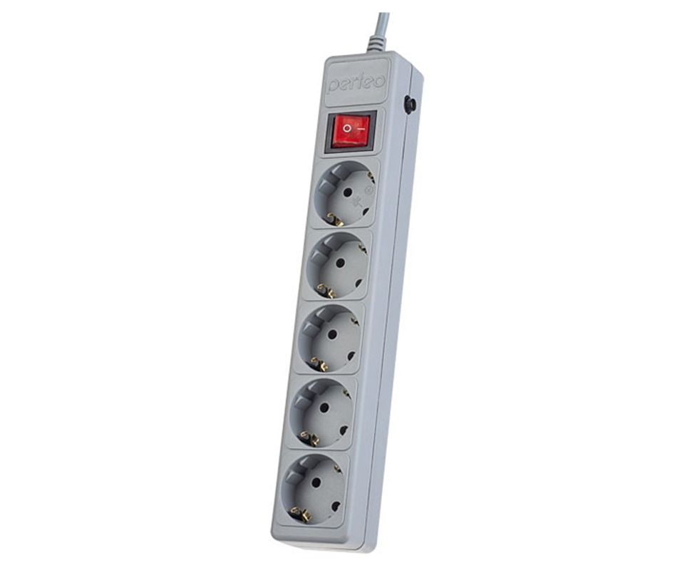Фильтр-удлинитель сетевой 5 розеток 1.8м Perfeo "POWER+", серый (PF-PP-5/1,8-G)