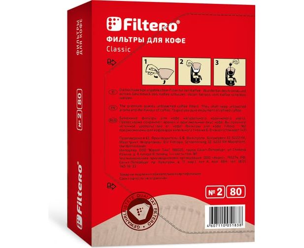 Фильтры для кофе Filtero №2 бумажные, 80шт, (№2/80) коричневый