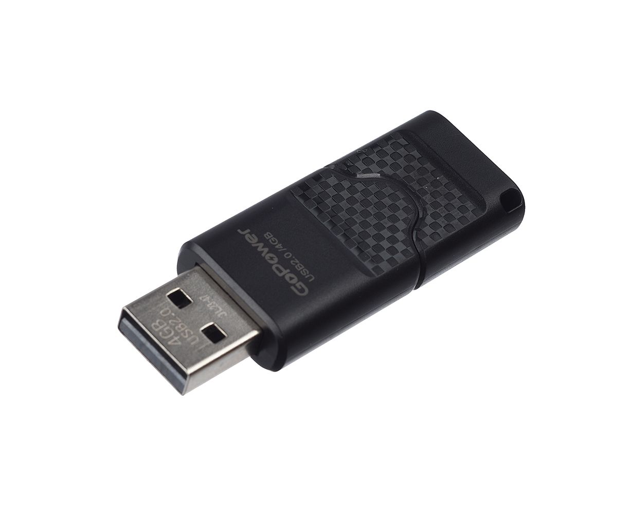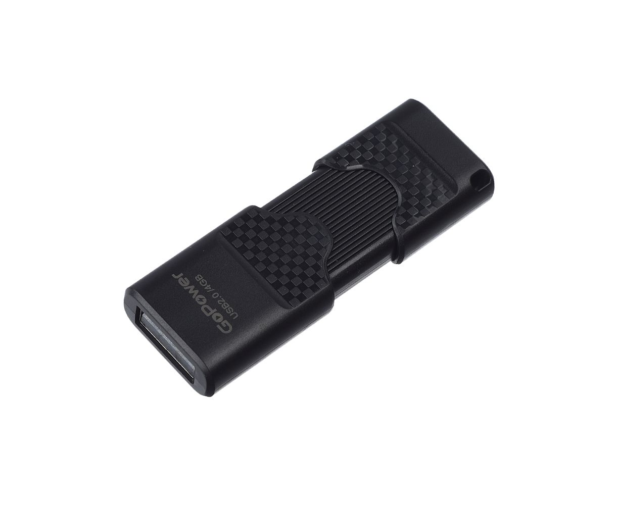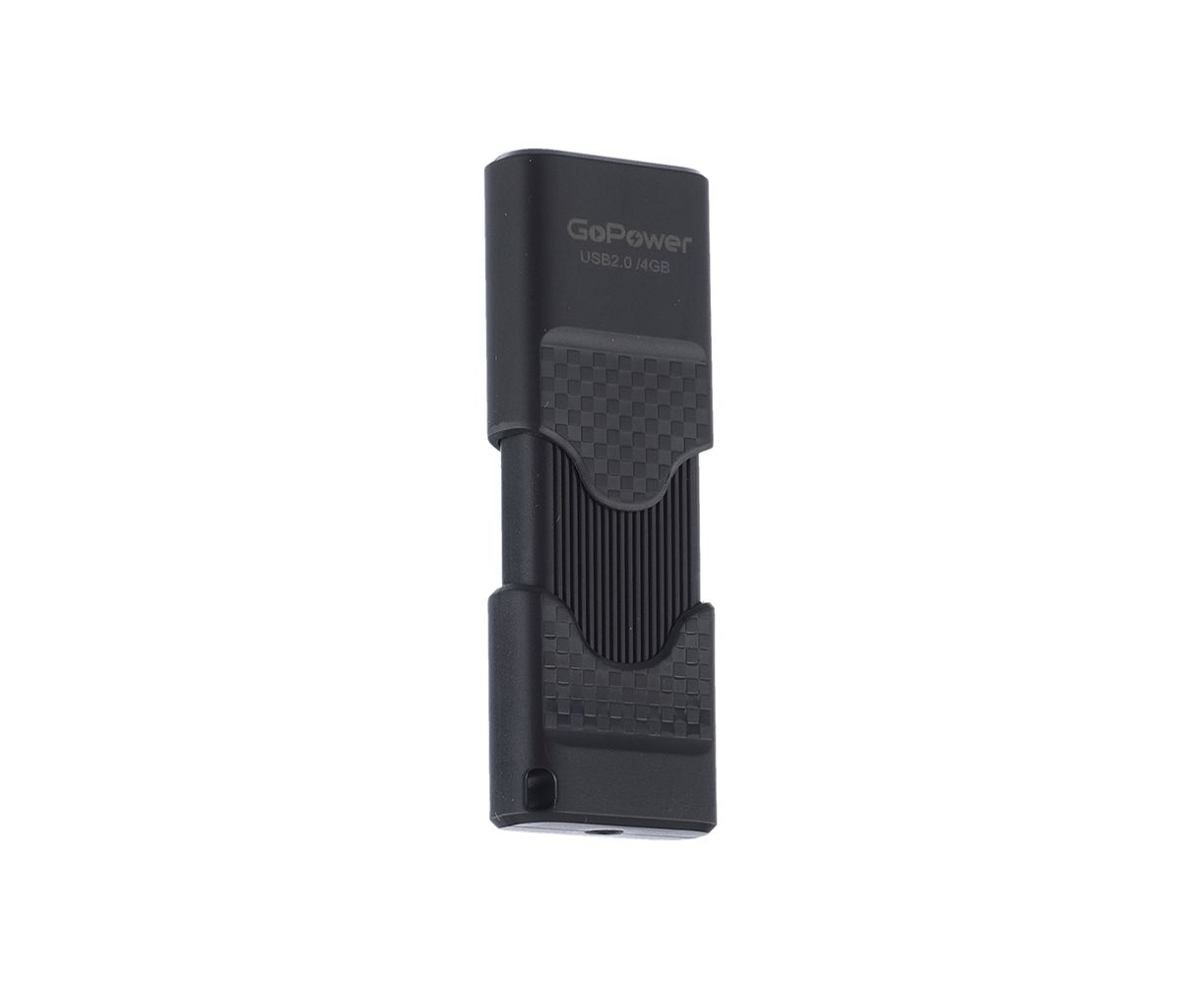Флеш-накопитель GoPower SLIDER 4GB USB2.0 пластик черный матовый (1/50/1000)