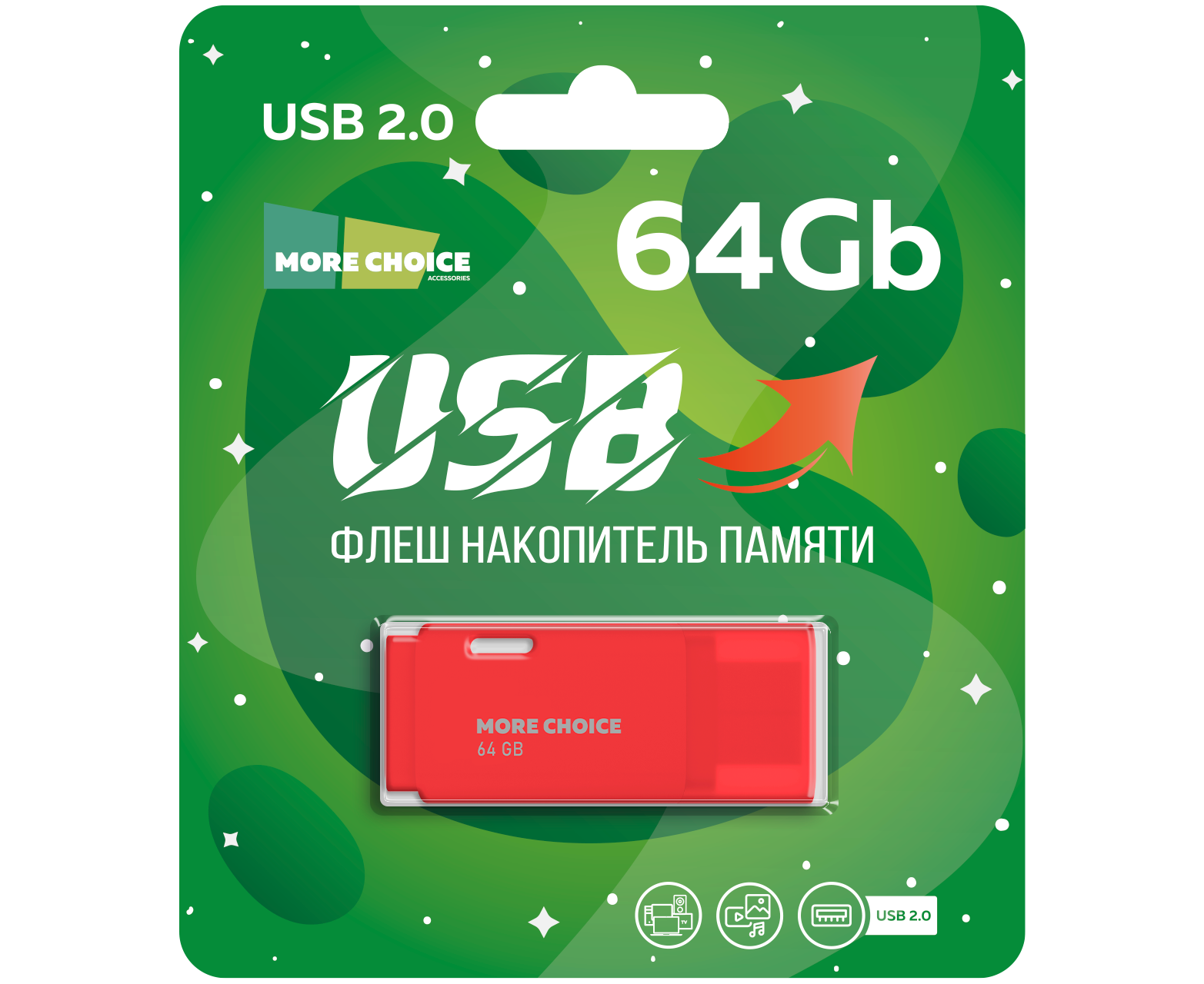 Флеш накопитель памяти USB 64GB 2.0 More Choice MF64 (Red)