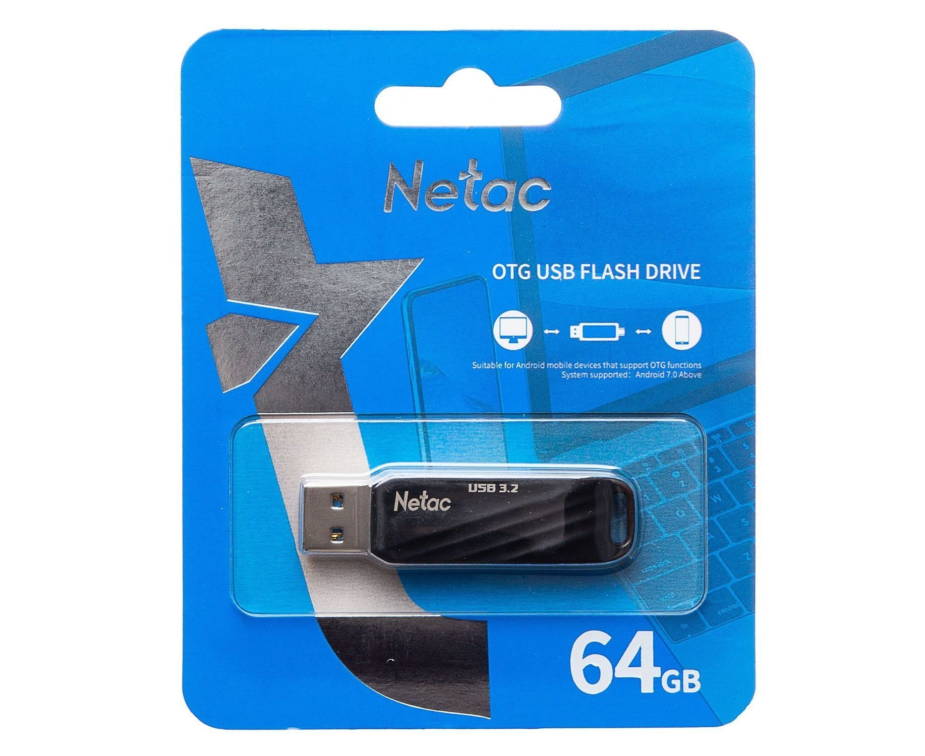 Флэш накопитель USB 64 Гб Netac US11 Dual (USB 3.0+ Type C) (black/silver) (219894)