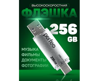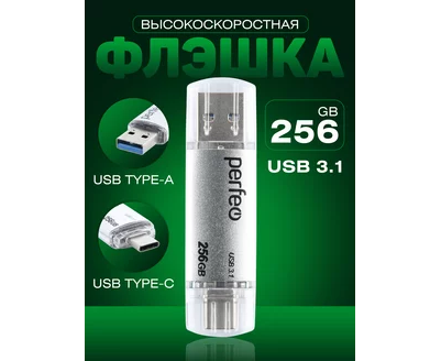 Флешка Perfeo 3.1 256GB C16 / Серебристая Type A+C, (Арт. PF-C16S0256TC)