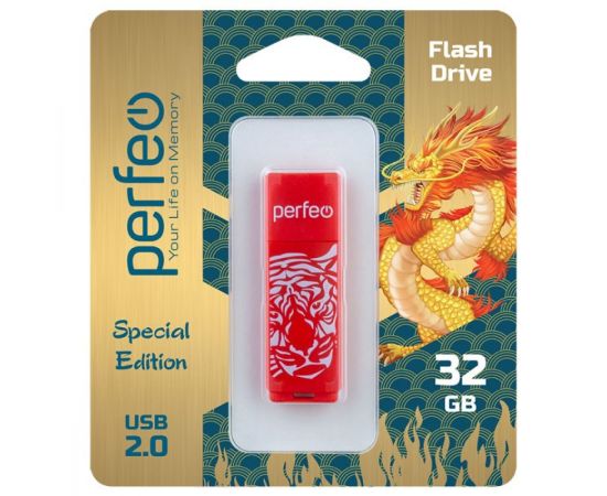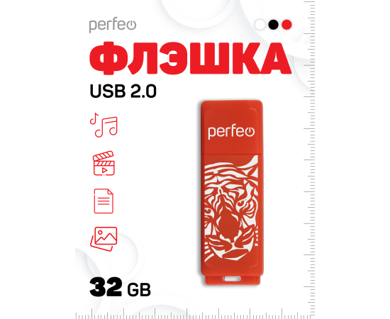 Флешка Perfeo USB 32GB C04 / Tiger Красная, (Арт. PF-C04RT032)