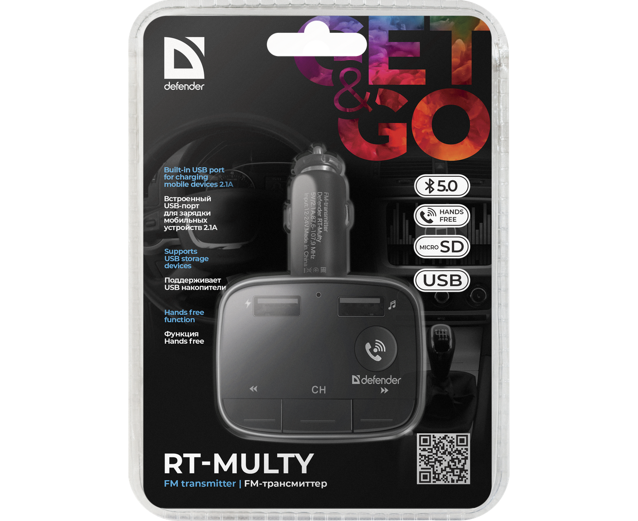 FM-трансмиттер Defender RT-MULTY BT/HF 68009