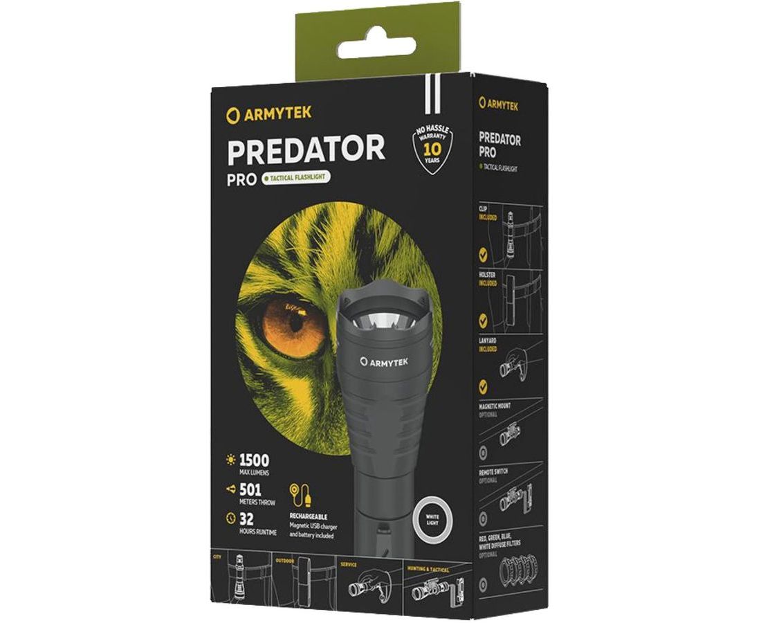 Самый дальнобойный тактический фонарь Armytek теперь с магнитной зарядкой. Predator Pro — это тактическая модель с узким лучом света впечатляющей дальности для решения специализированных задач и охоты. Фонарь нового поколения сохранил лучшие характеристики прошлой версии.