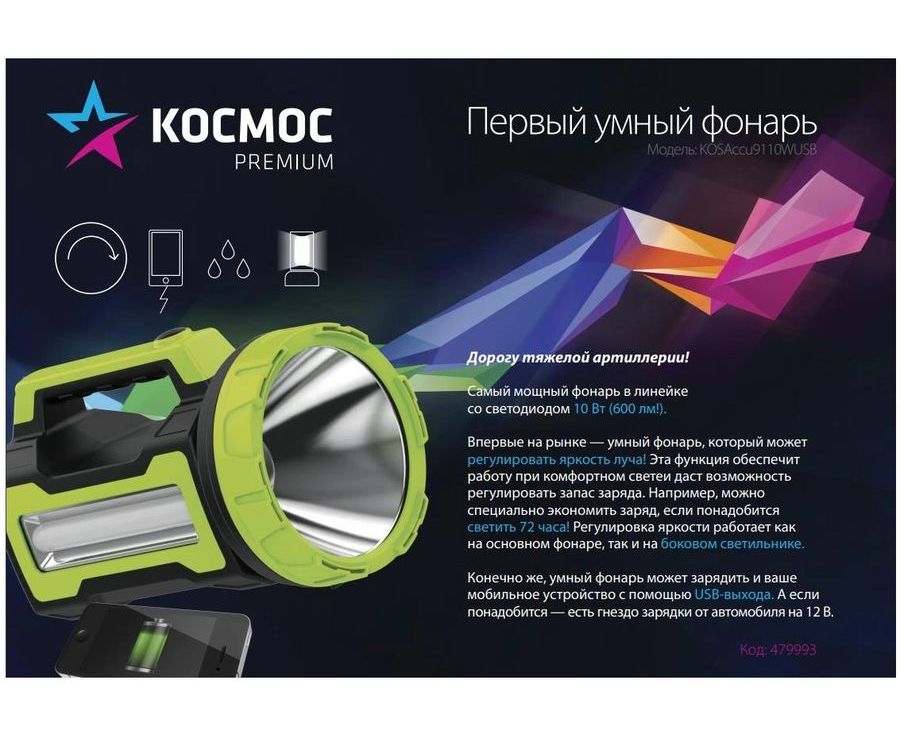 Фонарь Космос 9110WUSB