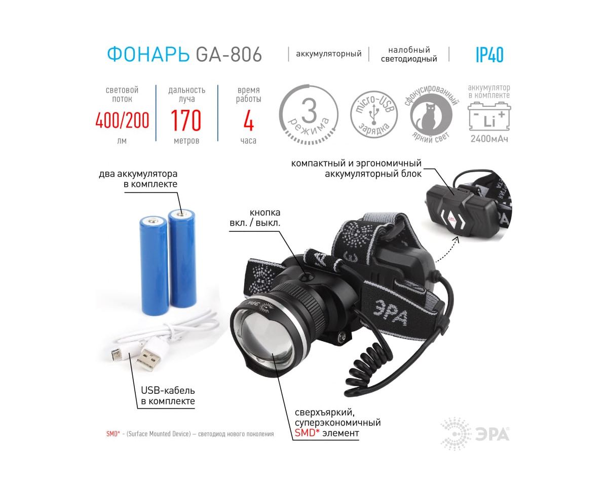 Фонарь налобный ЭРА GA-806 (Б0039626)