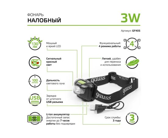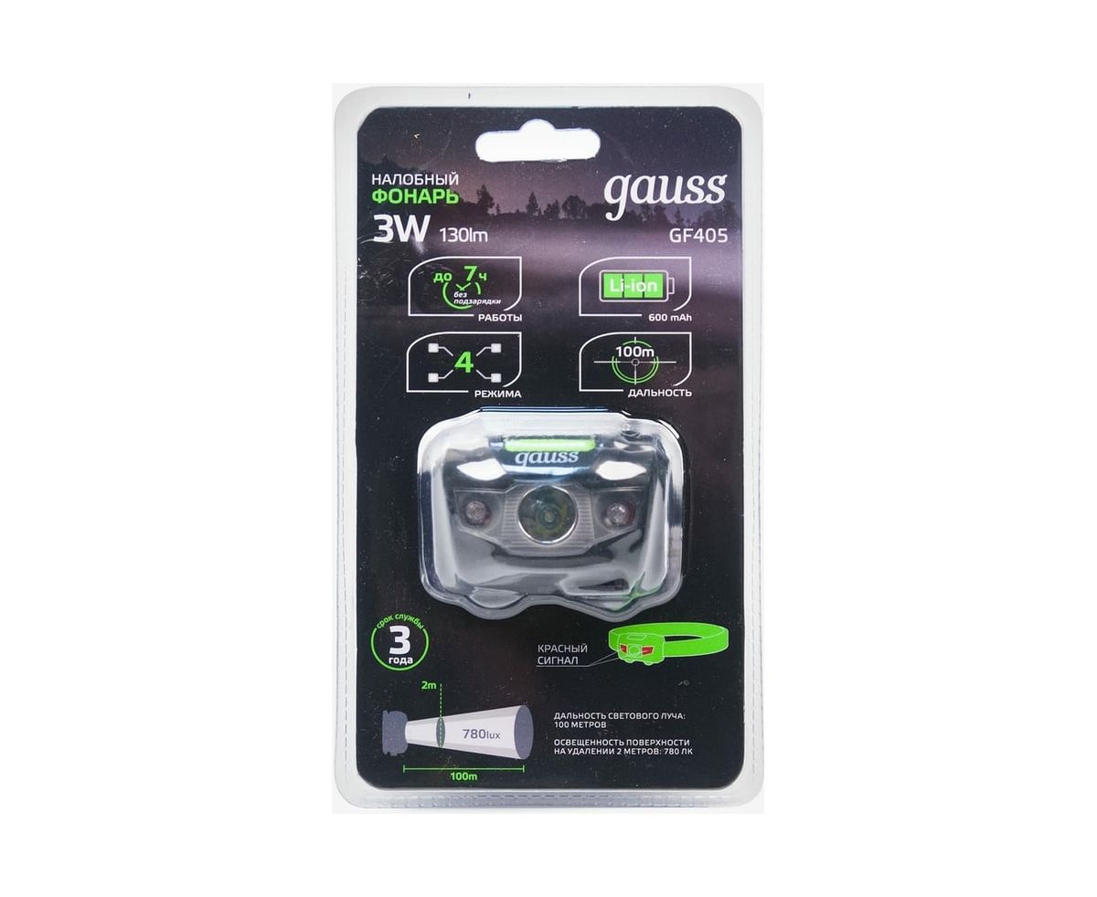 Фонарь налобный Gauss модель GFL405 3W 130lm Li-ion 600mAh LED - это многофункциональный фонарь с красным сигналом тревоги. Этот надежный и практичный фонарь станет незаменимым помощником в любых условиях.