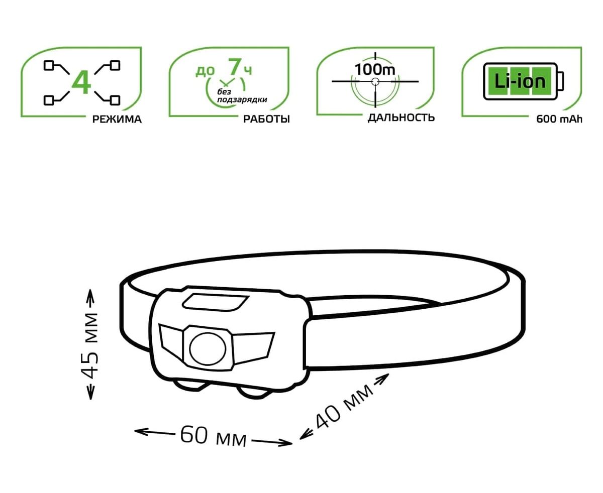 Особенности: Фонарь комплектуется качественным эластичным головным ремнем он обеспечивает надежную фиксацию и комфортное использование. Красный сигнал: сигнальный свет для чрезвычайных ситуаций или для подачи сигналов. Li-ion аккумулятор: ёмкая батарея обеспечивает длительное время автономной работы до 7 часов. Прочный корпус IP44: устойчив к пыли и брызгам, подходит для использования в любых условиях. Универсальность: идеально подходит для различных видов деятельности, таких как спорт, отдых, походы, гаражные работы и многое другое. Зарядка через micro USB: удобная и быстрая зарядка от любого устройства с USB-портом. Высокая дальность света 100 метров: освещает большие расстояния, дарит четкую видимость. 4 режима работы: выбирайте из различных режимов освещения, включая стробоскоп и SOS.