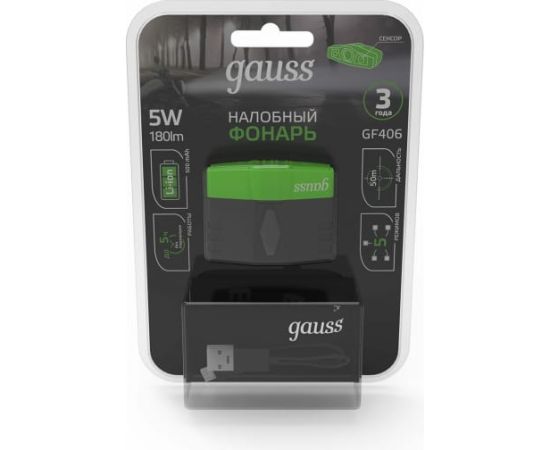 Фонарь налобный Gauss GFL406 черный 5Вт лам.:светодиод. (GF406)
