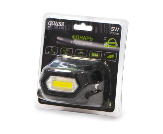 Фонарь налобный Gauss GFL409 черный 5Вт лам.:светодиод. 100lx встроенный аккумулятор (GF409)