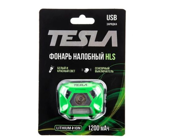 Фонарь налобный TESLA HLS, 3Вт, 140 люмен, литиевый аккумулятор, сенсор, красный свет