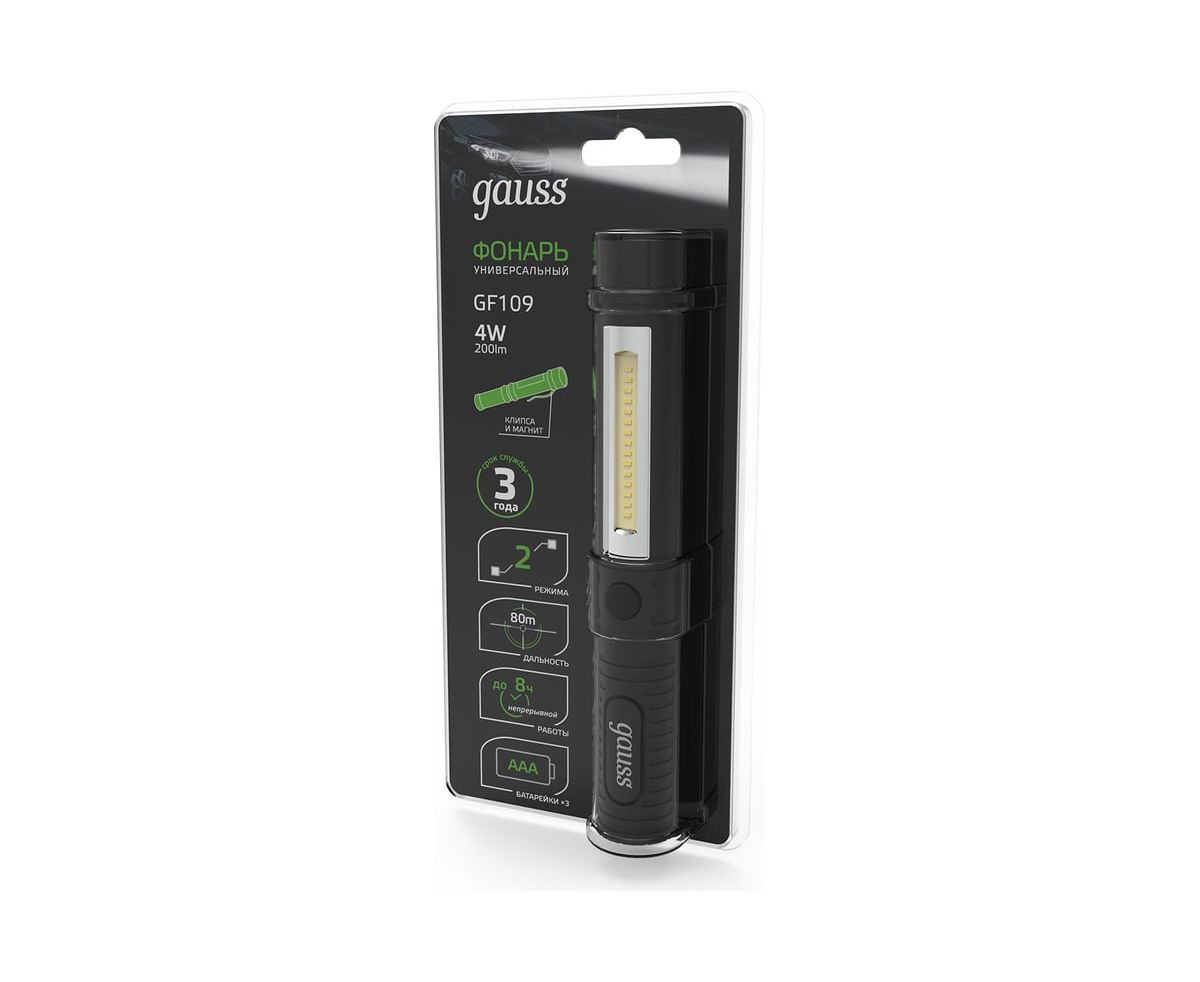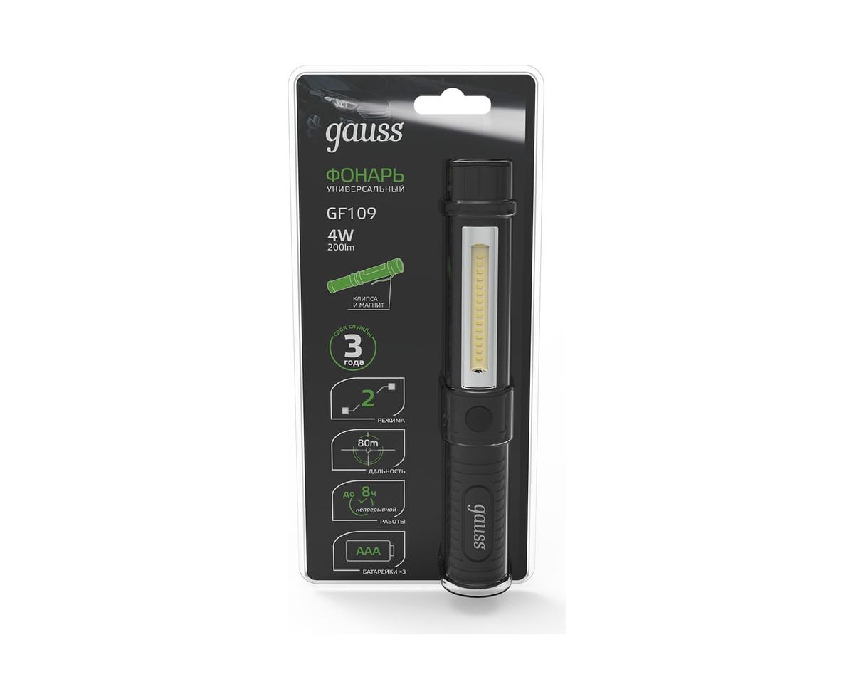 Преимущества Gauss GFL109 4W 200lm 3xAAA LED GF109
