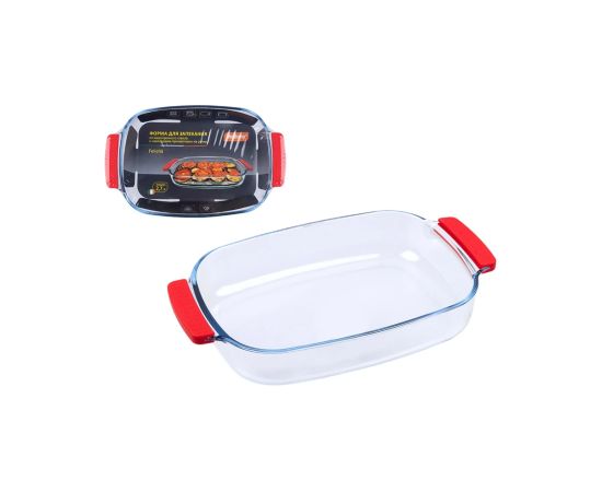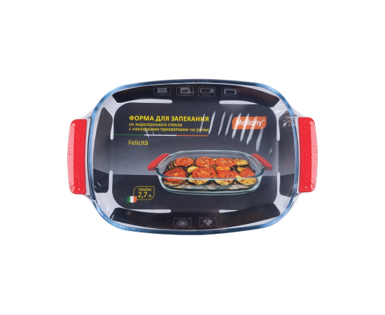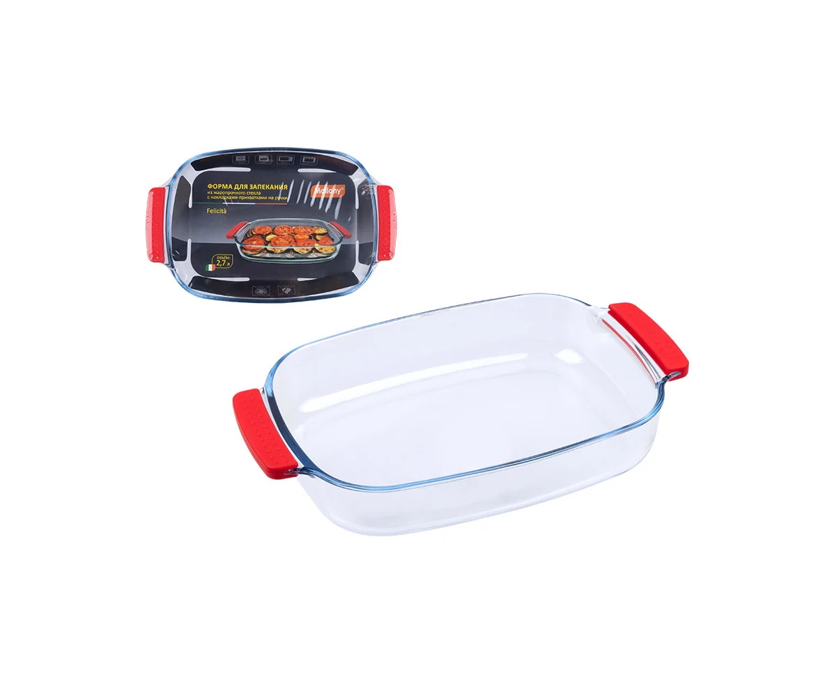 Форма для запекания Felicita, объём: 2,7 л, с силиконовыми накладками-прихватками на ручки, жаропрочное стекло, прямоугольной формы.