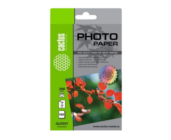 Фотобумага Cactus CS-GA6200100 10x15/200г/м2/100л/белый глянцевое для струйной печати