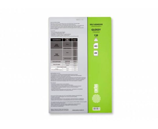 Фотобумага Cactus CS-GSA313020 A3/130г/м2/20л./белый глянцевое самоклей. для струйной печати