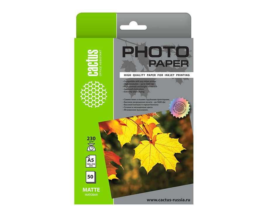 Фотобумага Cactus CS-MA523050 A5/230г/м2/50л/белый матовое для струйной печати