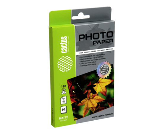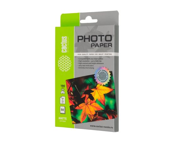 Фотобумага Cactus CS-MA619050 10x15/190г/м2/50л/белый матовое для струйной печати