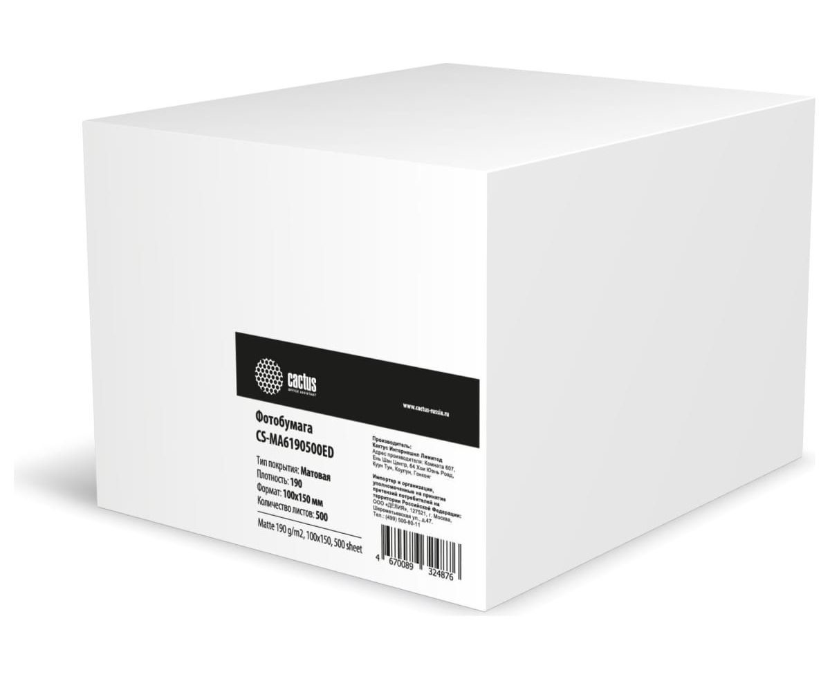 Фотобумага Cactus CS-MA6190500ED A6/190г/м2/500л/белый матовое/матовое для струйной печати