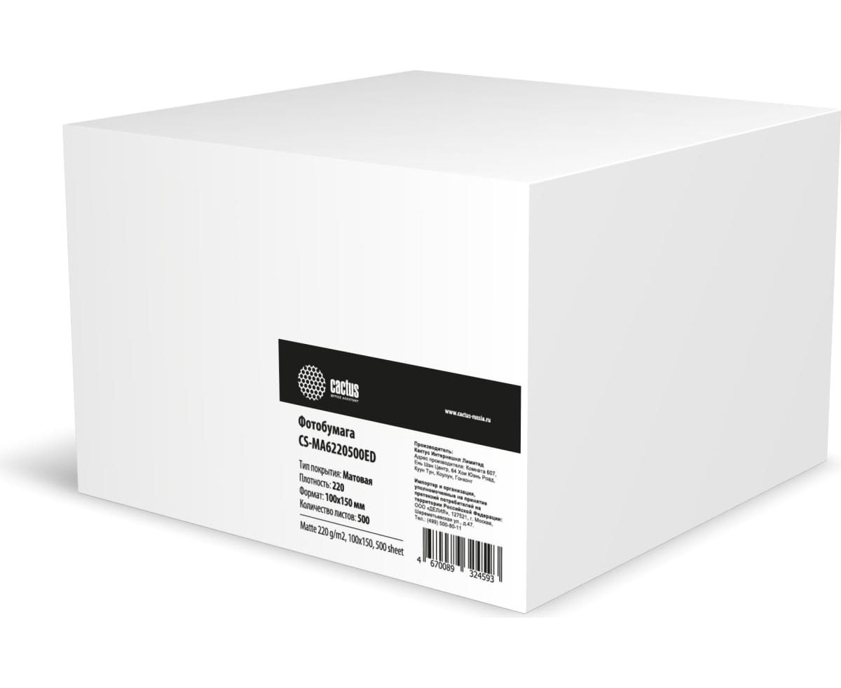 Фотобумага Cactus CS-MA6220500ED A6/220г/м2/500л/белый матовое/матовое для струйной печати