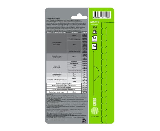 Фотобумага Cactus CS-MA623050 10x15/230г/м2/50л/белый матовое для струйной печати