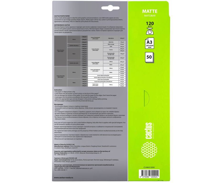 Фотобумага Cactus Photo Paper (CS-MA312050) A3 120 г/м² 50 листов
