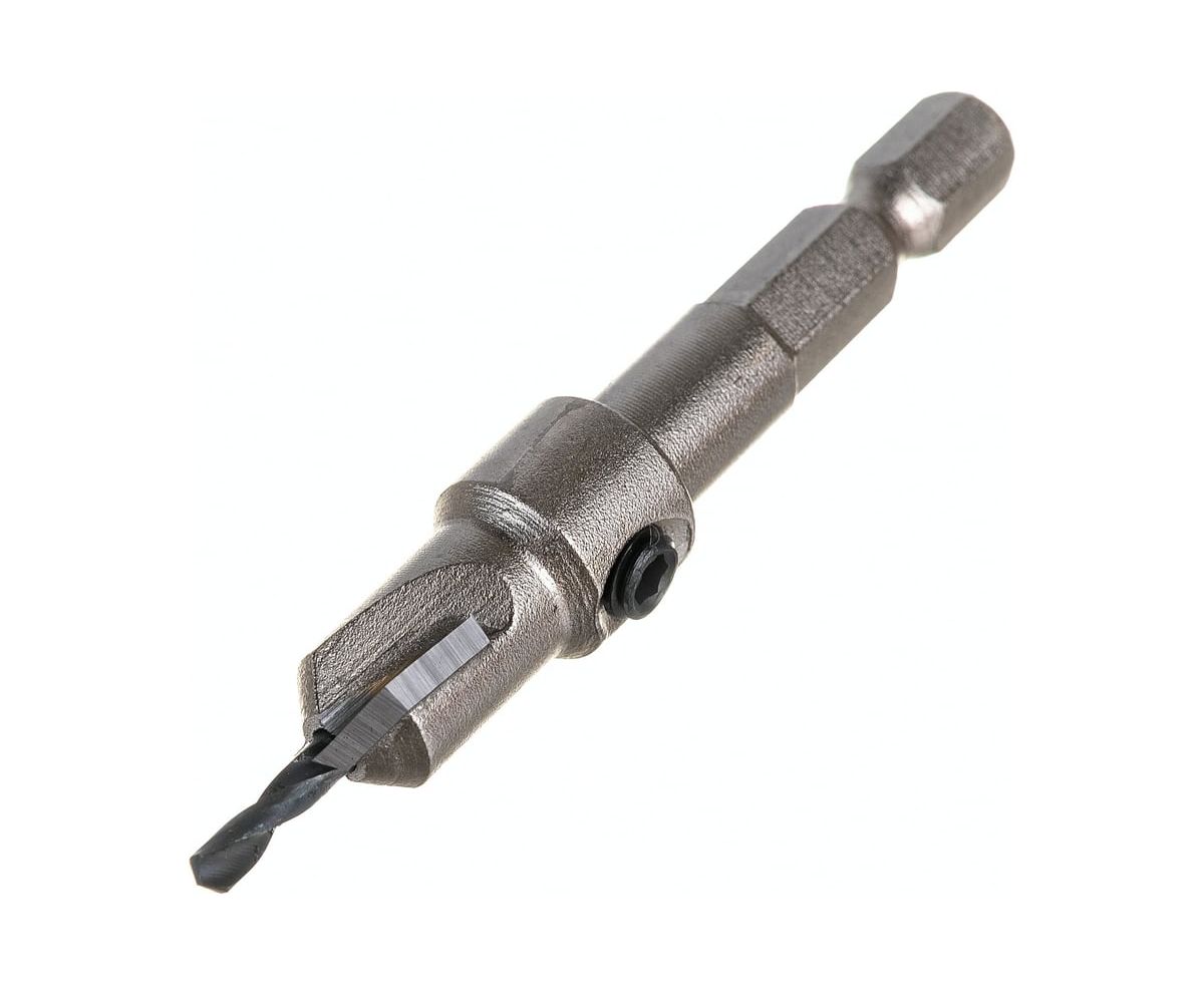 Оснащена сверлом и режущими ножами для эффективного сверления и фрезерования углублений и отверстий до нужного диаметра. Отлично высверливает отверстие под крепеж и одновременно с этим нарезает фаску под утапливание его головки в потай.