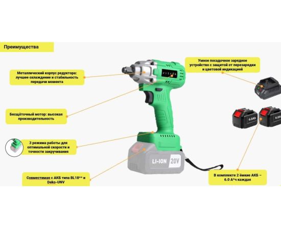 Гайковерт Zitrek Crusher 20-Li (063-4372) аккумуляторный ударный (20В, Li-ion 2x6.0Ач, з/у, кейс)