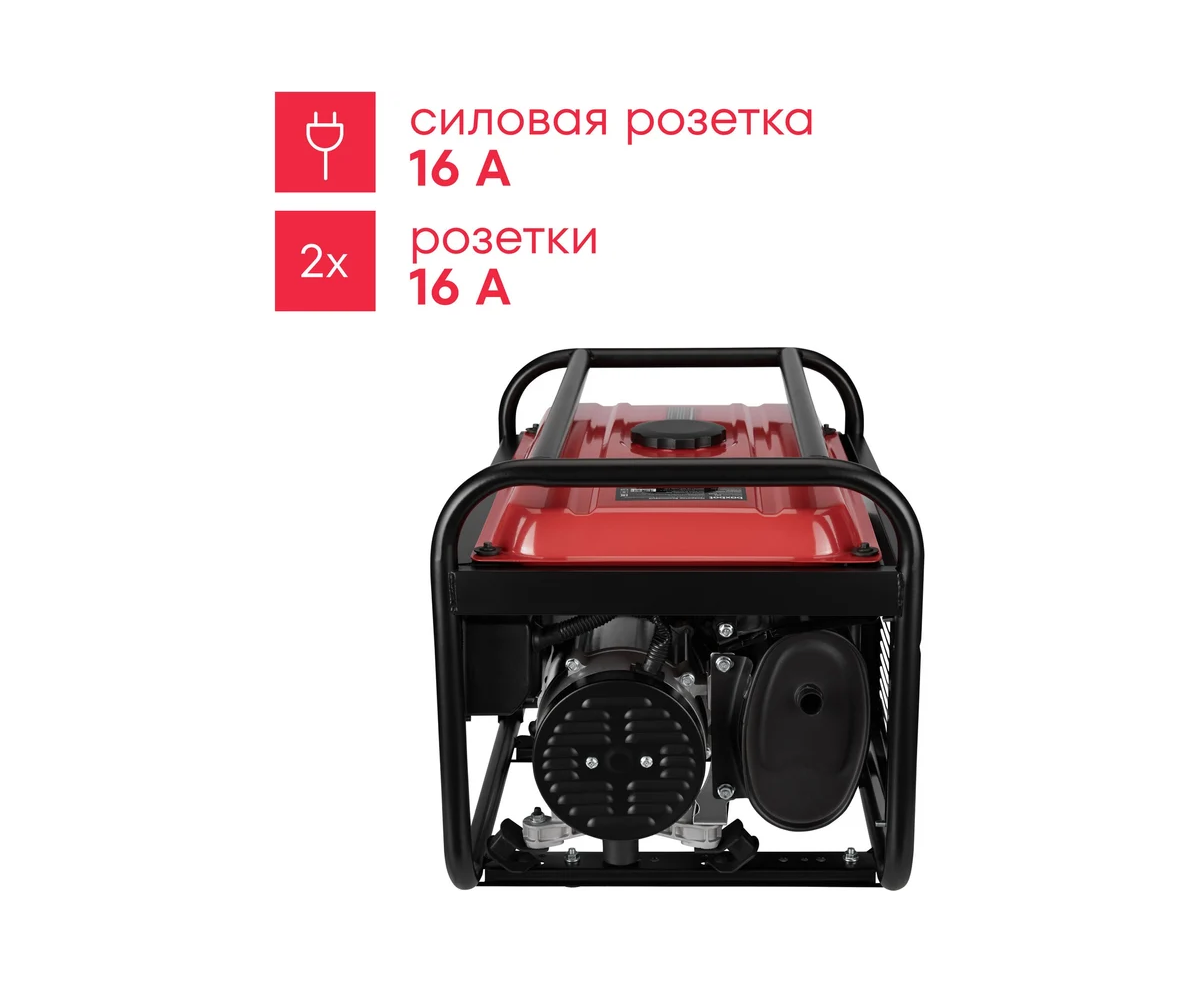 Две розетки 16А облегчают использование с несколькими потребителями. Клеммы полной мощности 230 В позволяют задействовать всю мощность генератора в любых условиях, даже без использования штепсельной вилки: достаточно оголить концы проводов, накрутить их на клеммы и зажать защитными колпачками.