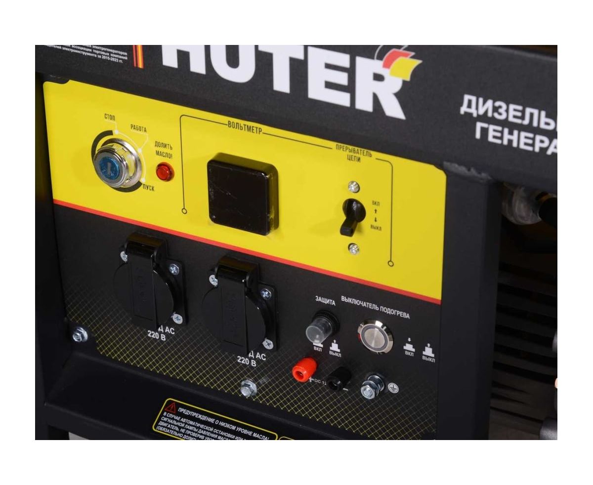 Электрогенератор дизельный (дизельная электростанция) - электрическая машина, предназначенная для автономного электроснабжения в повторно-кратковременном режиме потребителей бытового и аналогичного назначения, относящихся к классу переносных электроприемников. В качестве первичного двигателя используется дизельный двигатель. Электрогенератор Huter имеет бытовое назначение.