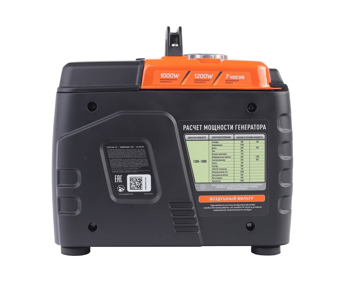 Переносной компактный инверторный генератор предназначен для питания маломощных электроприборов на загородном участке, в походе, на рыбалке. Высокое качество поставляемой энергии позволяют подключать компьютеры, ноутбуки, плазменные и LCD телевизоры и другую чувствительную электронику. Надежный и тихий 4х тактный двигатель. Режим ECO при малых нагрузках увеличивает ресурс двигателя, уменьшает шум, экономит топливо более чем на 40%. 2 выхода USB для зарядки мобильных устройств. Защита от сухого запуска (без масла), защита от перегрузки. Кнопка перезапуска питания при срабатывании защиты от перегрузки. Индикация состояния генератора: наличие напряжения, низкий уровень масла, перегрузка.